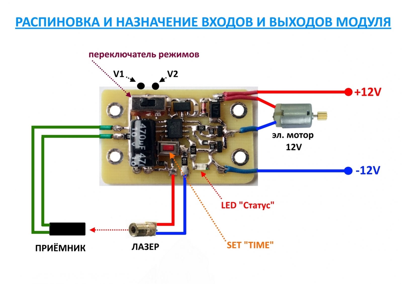 Комплектація: Модуль, передавач (лазер), приймач, і схема підключення.