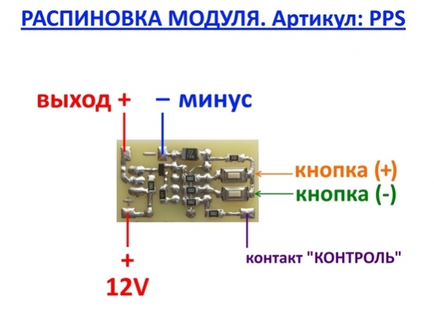 Підключення та програмування модуля. Декілька прикладів підключення модуля показані на малюнках, при підключенні для інших цілей, схема підключення може змінитися, але суть не змінюється. Для вибору потрібної потрібної яскравості свічення треба: Після підключення модуля, за допомогою кнопок (+) і (-) вибрати необхідний рівень, коли необхідний рівень встановлений його треба занести до енергонезалежної частини пам'яті, подаємо і утримуємо на контакт "Контроль" плюс живлення (або натискаємо Гальмо), і натискаємо один раз кнопку "+". Всі. Модуль швидко десять разів моргне нам у відповідь виходом, підтверджуючи успішне занесення в пам'ять вибраних налаштувань. При необхідності можна переналаштувати модуль багаторазово, для цього треба повторити цю процедуру. Довідка: Кнопка "-" - зменшує яскравість, кнопка "+" збільшує яскравість, подача плюса живлення контакт "Контроль" разом із кнопкою "+" - збереження налаштувань.