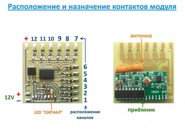 Комплектація: Модулей - 2шт, пульт ДРК - 1шт (за бажанням можна докупити), інструкція та схема підключення.