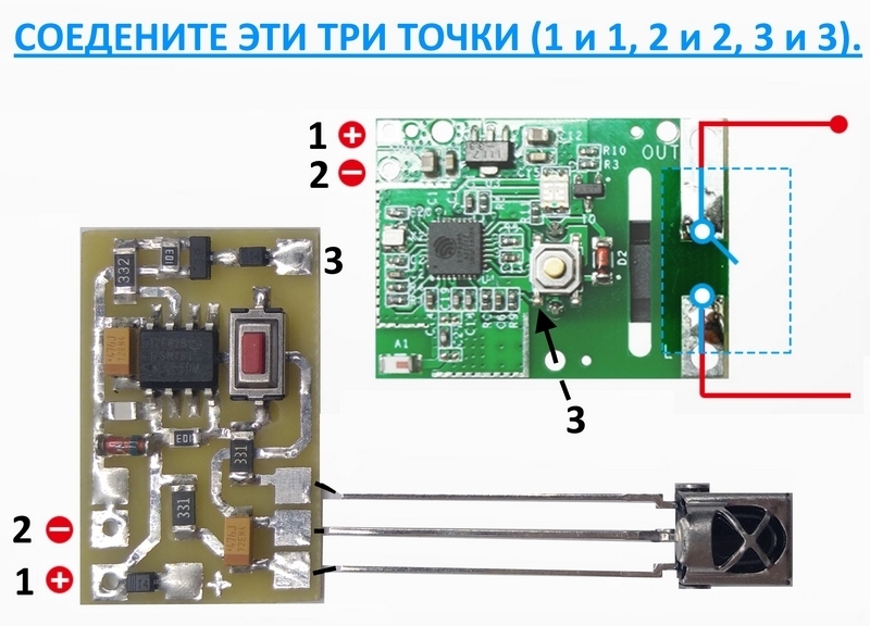 Вмикання-вимикання тепер можливе з пульта, та по Wi-Fi або з кнопки, незалежно звідки вмикали, або як вимикали пристрій. Модуль можна перепрограмувати на іншу кнопку ПДК або на інший пульт, скільки завгодно разів. Для перепрограмування модуля: Треба зробити вищеописану процедуру.