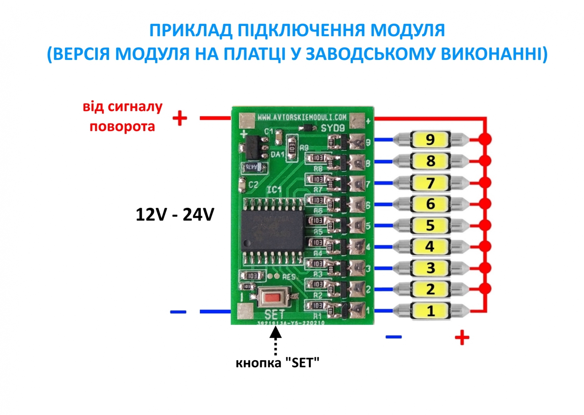 ДИНАМІЧНИЙ АБО АНІМОВАНИЙ ПОВОРОТНИК, 9 КАНАЛІВ.