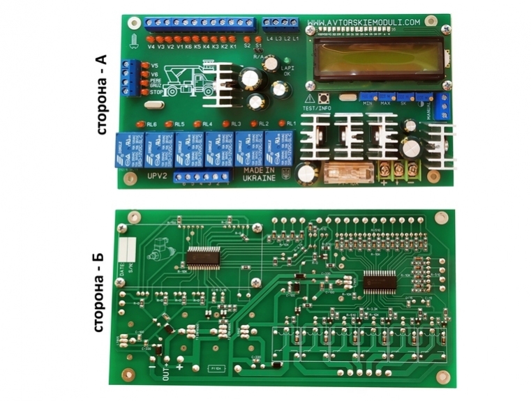 На цій сторінці виставлятимуться фото модулів та блоків керування різних електронних пристроїв, які були зібрані на платах виготовлених у заводських умовах.